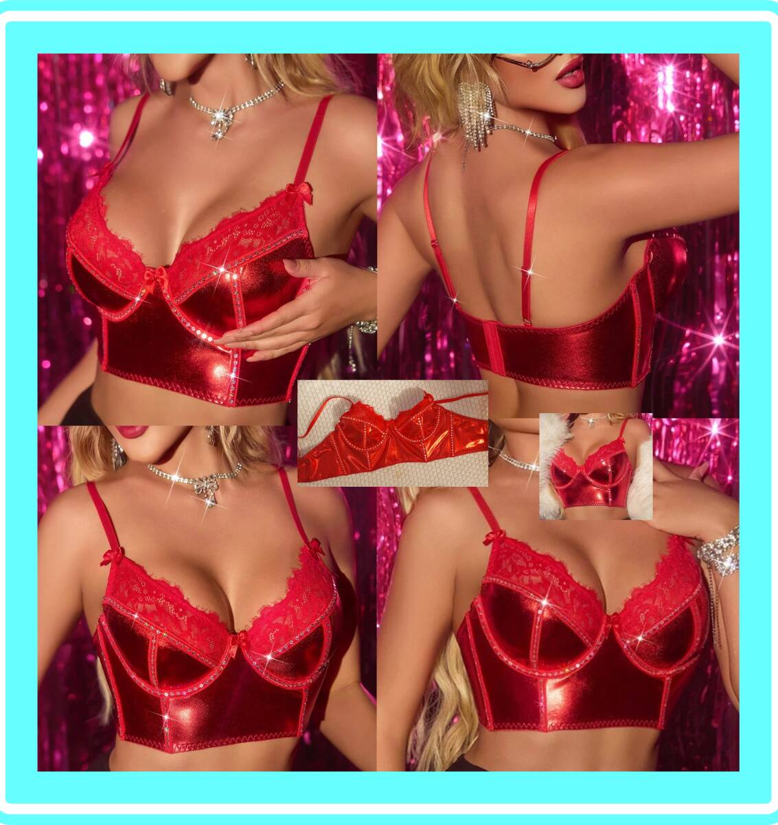 - ★超美ロングブラ★素敵★大人Sexy★メタリック★光沢★レッド★アンダーワイヤー★美バスト★キュート★ボーン入★B148