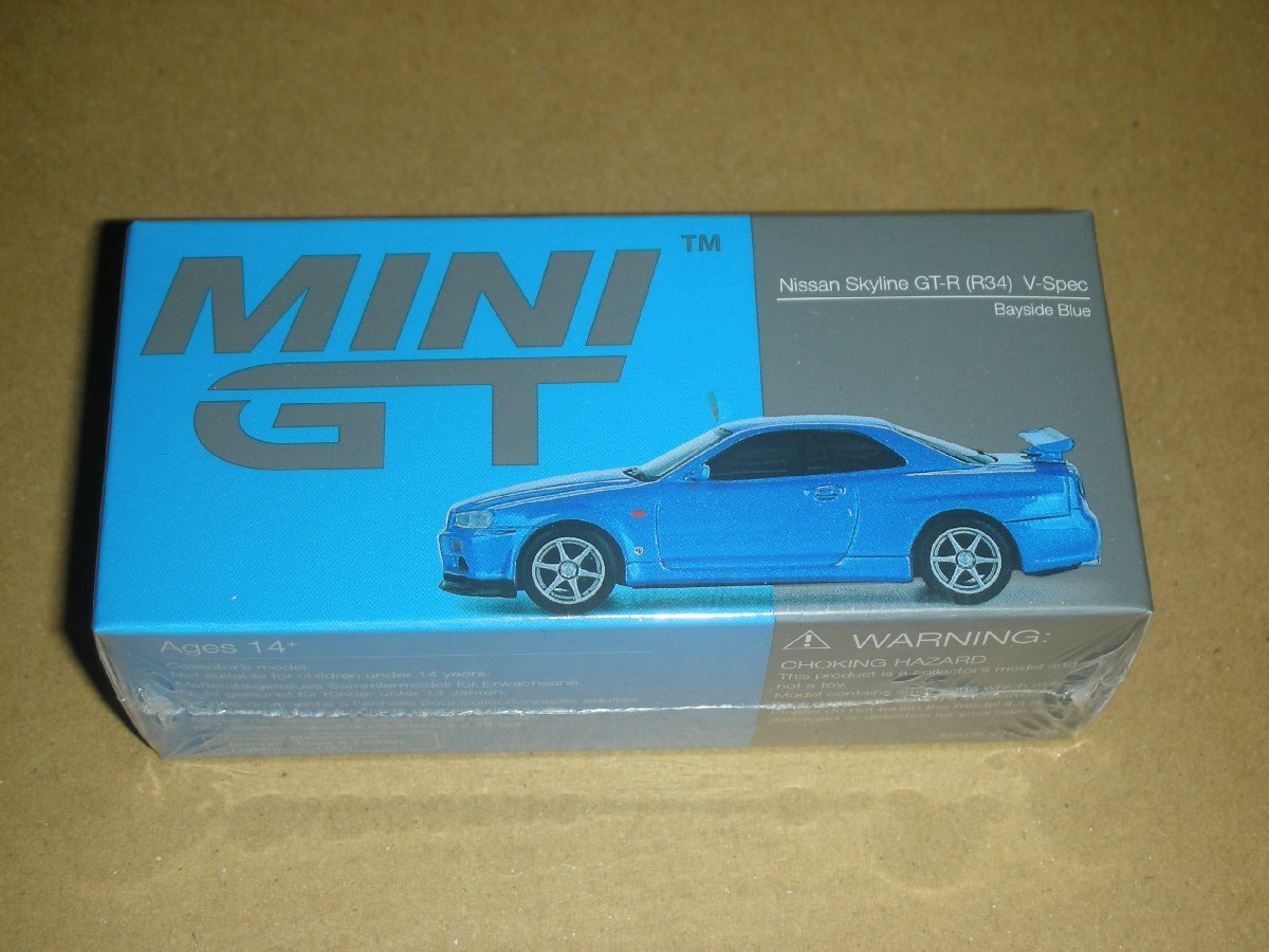 MINI GT 1/64 ニッサン スカイライン GT-R R34 Vスペック ベイサイドブルー (右ハンドル) 完成品