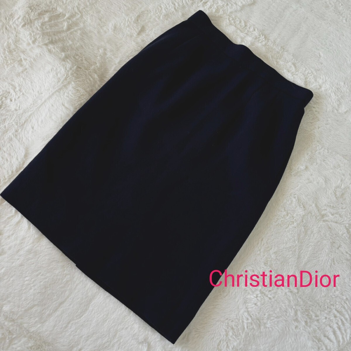 - Christian Dior クリスチャンディオール 膝丈 サイドポケット フォーマル タイトスカート サイズ9 ネイビー ★1000