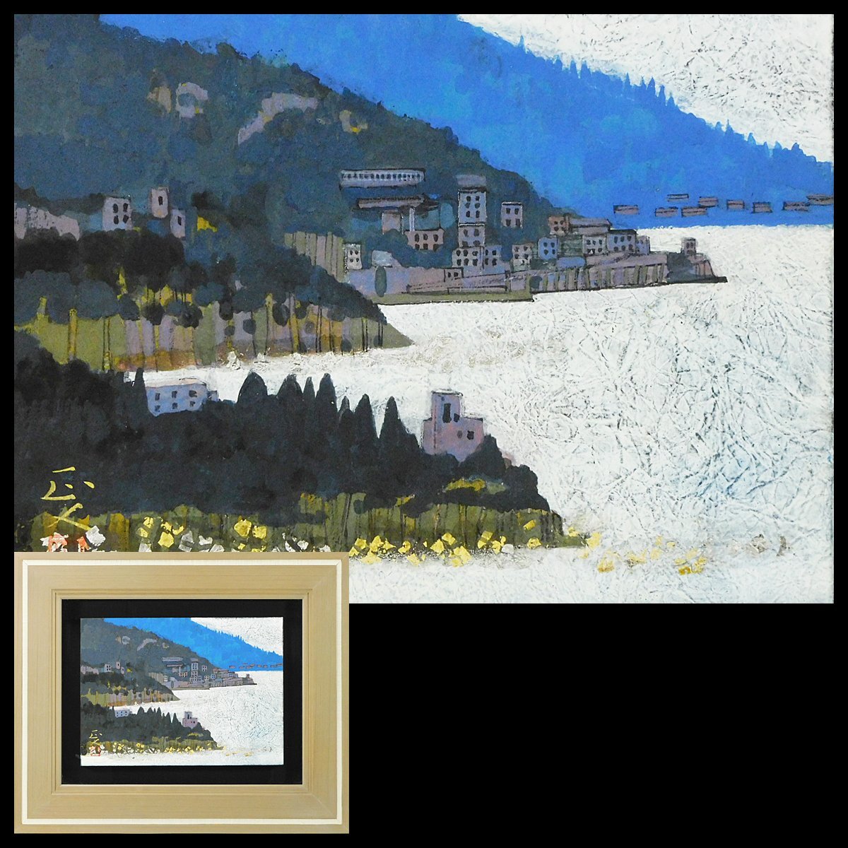 > 柳沢正人 アマルフィの波 F4 日本画 額装 共シール 専用タトウ 無所属巨匠 成川美術館 メディチ・リッカルディ宮殿収蔵 s24120506