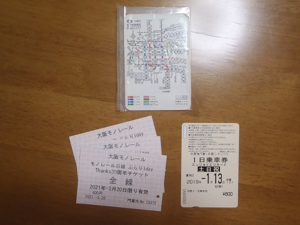 - 大阪市営地下鉄路線図カード(長堀鶴見緑地線建設中) + 大阪市営地下鉄・大阪モノレール 1日乗車券(磁気カード)USED