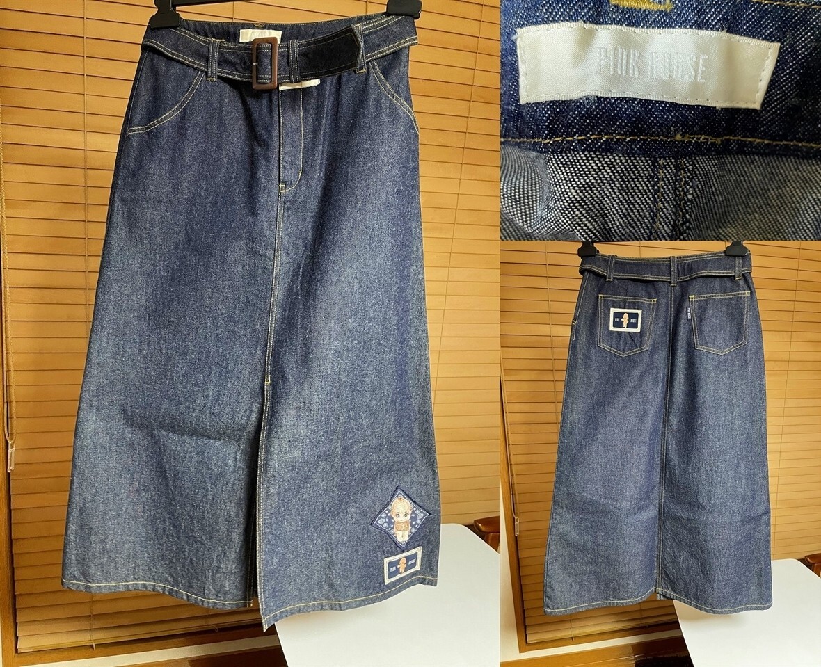 > 【激安1点のみ 国内正規品】PINK HOUSE ピンクハウス コットン キューピー デニム 共ベルト付 ロング スカート M インディゴ ネイビー系