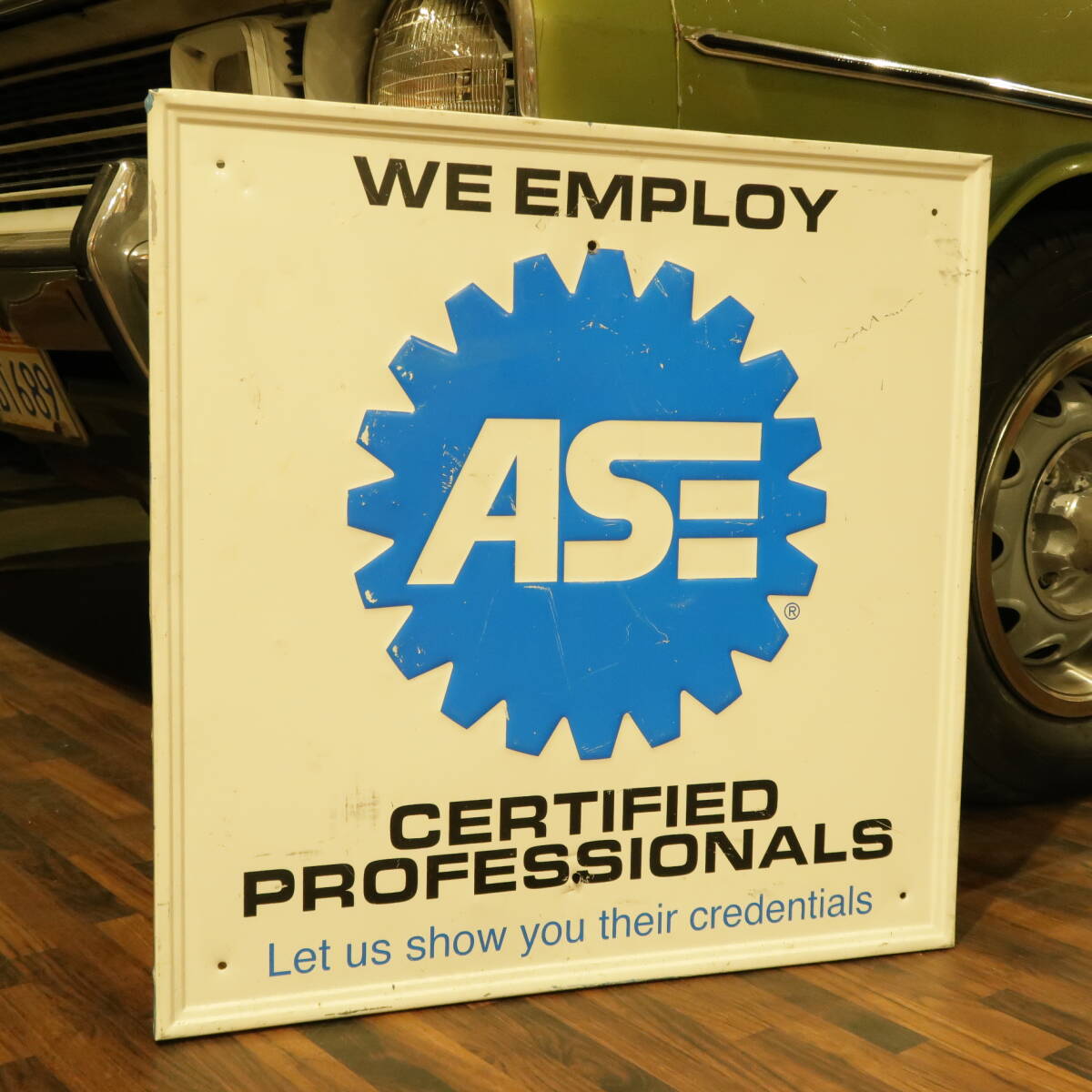 > ASE CERTIFIED PROFESSIONALS 全米優良自動車サービス協会 ビンテージ サイン 看板 USA オートショップ ガレージ 店舗什器 装飾 雑貨
