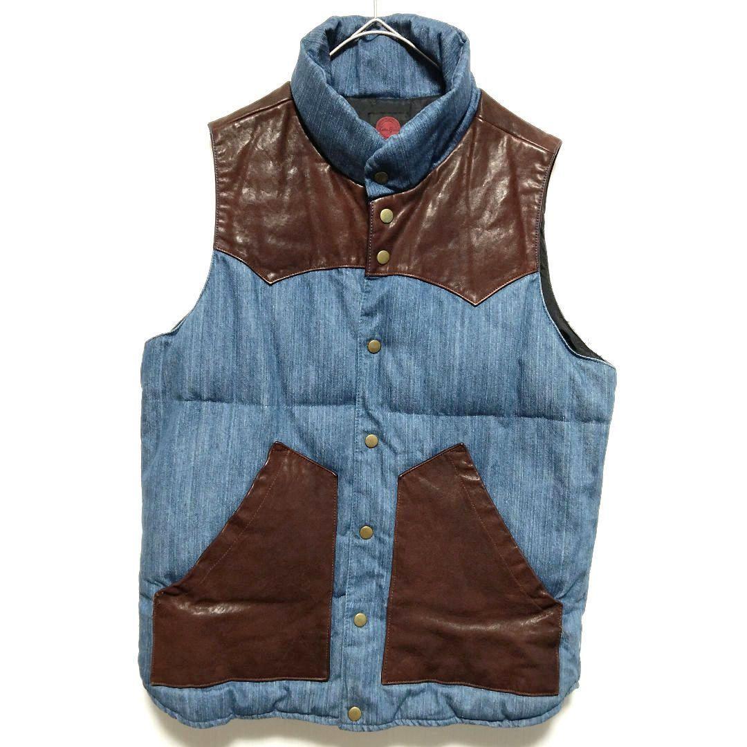 - 牛革 本革 レザー 異素材 ドッキング デニム ダウンベスト 中綿 Mサイズ