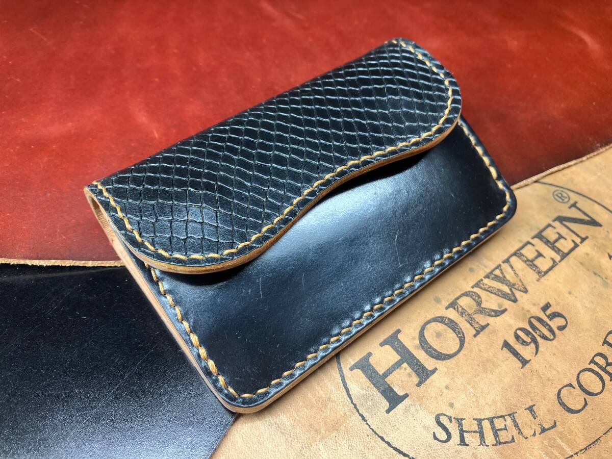 - ■no.896★コインケースlot.601★ ホーウィン社シェルコードバンスネーク型押し★ブラック