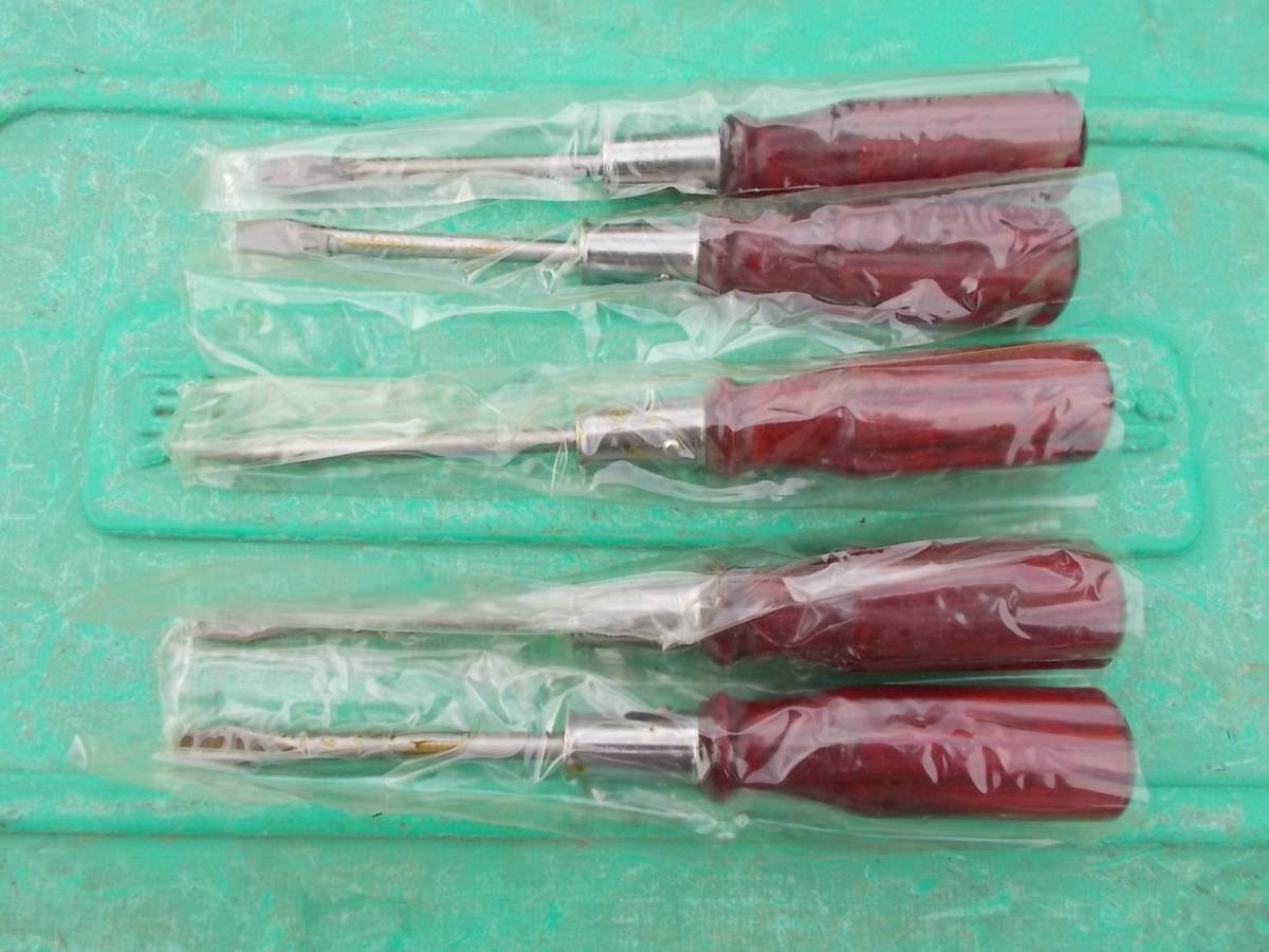 - 未使用品 日本製 天然木ハンドル 中型 ベッセル マイナス ドライバー 4本組