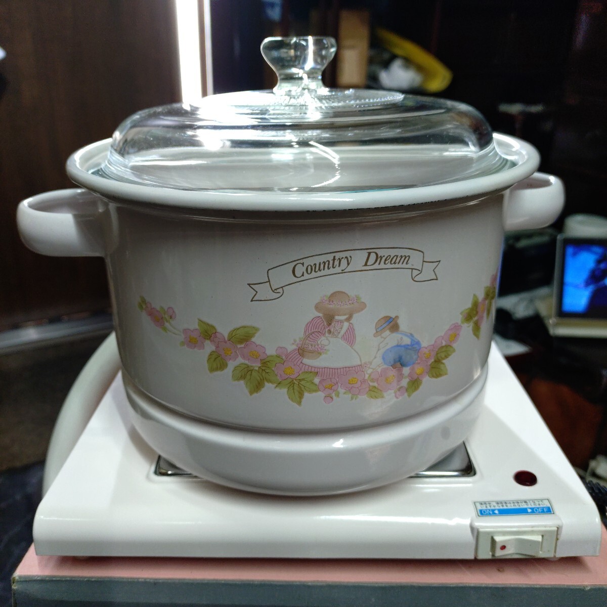 - スイッチ付ウォーマー&スチームポット20cm(目皿付) Country Dream 両手鍋 ホーロー