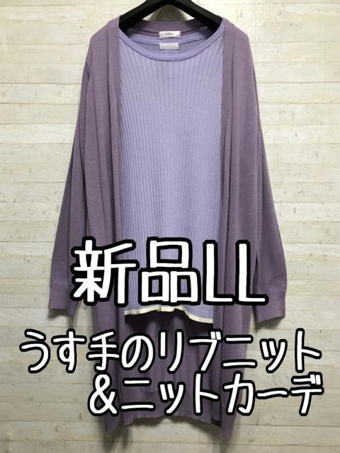 - 新品☆LL♪ラベンダー系♪リブニット&ニットカーデ♪うす手〇B891