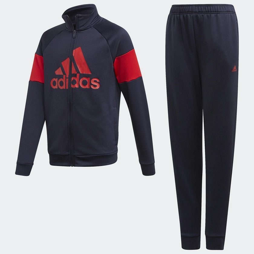 > アディダス ジュニア バッジオブスポーツ トラックスーツ 160cm ネイビー/レッド 子供用 スタンドカラージャケット&パンツ ジャージ 上下
