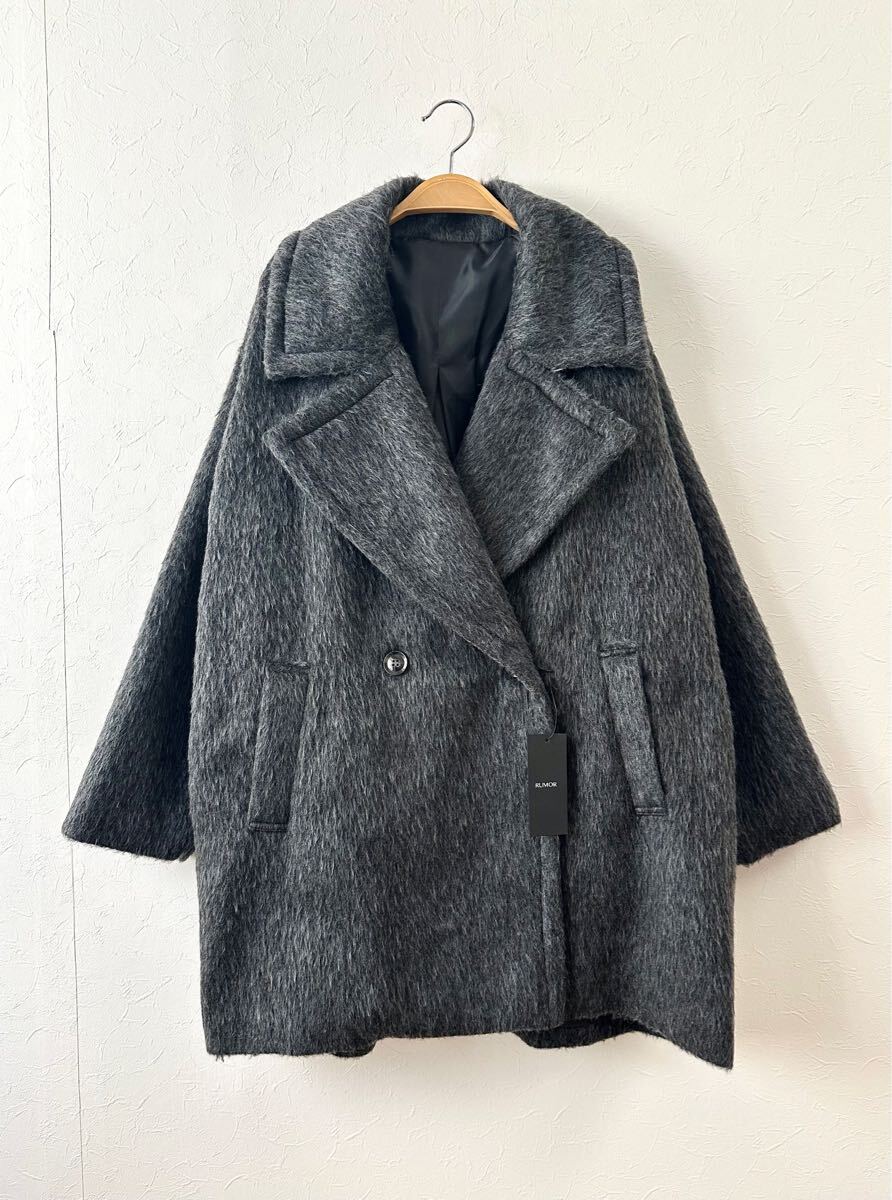 - 新品 タグ付き シャギー ミドル丈 コート フリーサイズ チャコールグレー ウール混