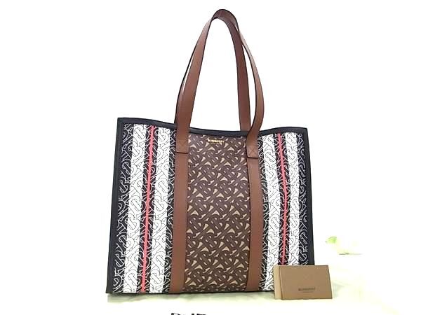 > ■新品同様■ BURBERRY バーバリー TBモノグラム PVC×レザー ハンドバッグ トートバッグ ショルダー 肩掛け ブラウン系 FH0879