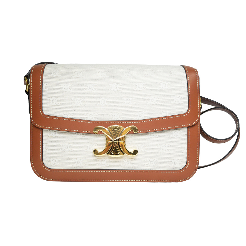 > 【名東】セリーヌ ショルダーバッグ トリオンフ ブラウン ベージュ キャンバス レディース その他
