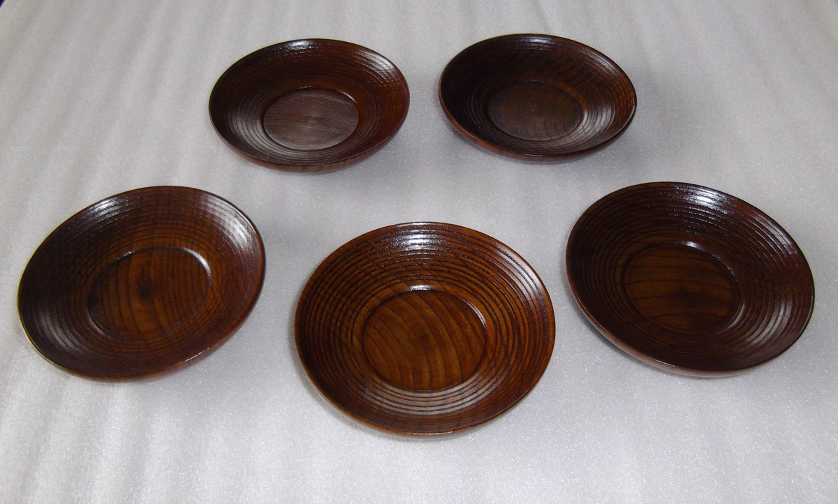 - 【未使用品】木製うるし塗り ★3.5ダルマ千筋茶托・5枚組☆拭き漆♪