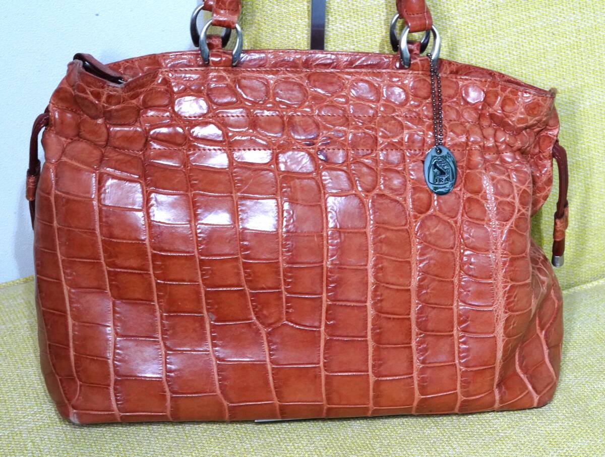 - 日本製 マットクロコダイル ハンドバッグ ナチュラルブラウン ファスナー JRA