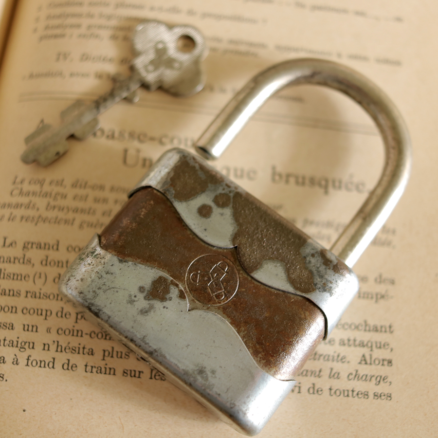 > 【刻印 エンボス WESTERN GERMANY】フランス アンティーク パドロック 南京錠 熊鍵 ドアロック ラッチ ロック インダストリアル 扉 鍵 key