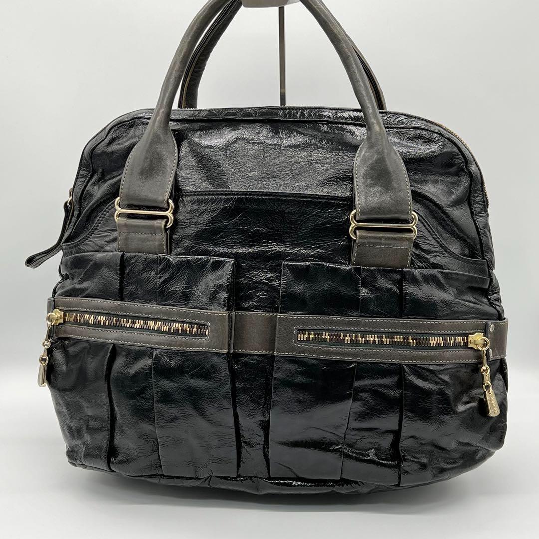 > 【美品】SEEBYCHLOE シーバイクロエ デイトリッパー ハンドバッグ トートバッグ A4サイズ エナメル 大容量 レディース ブラック BG540225B