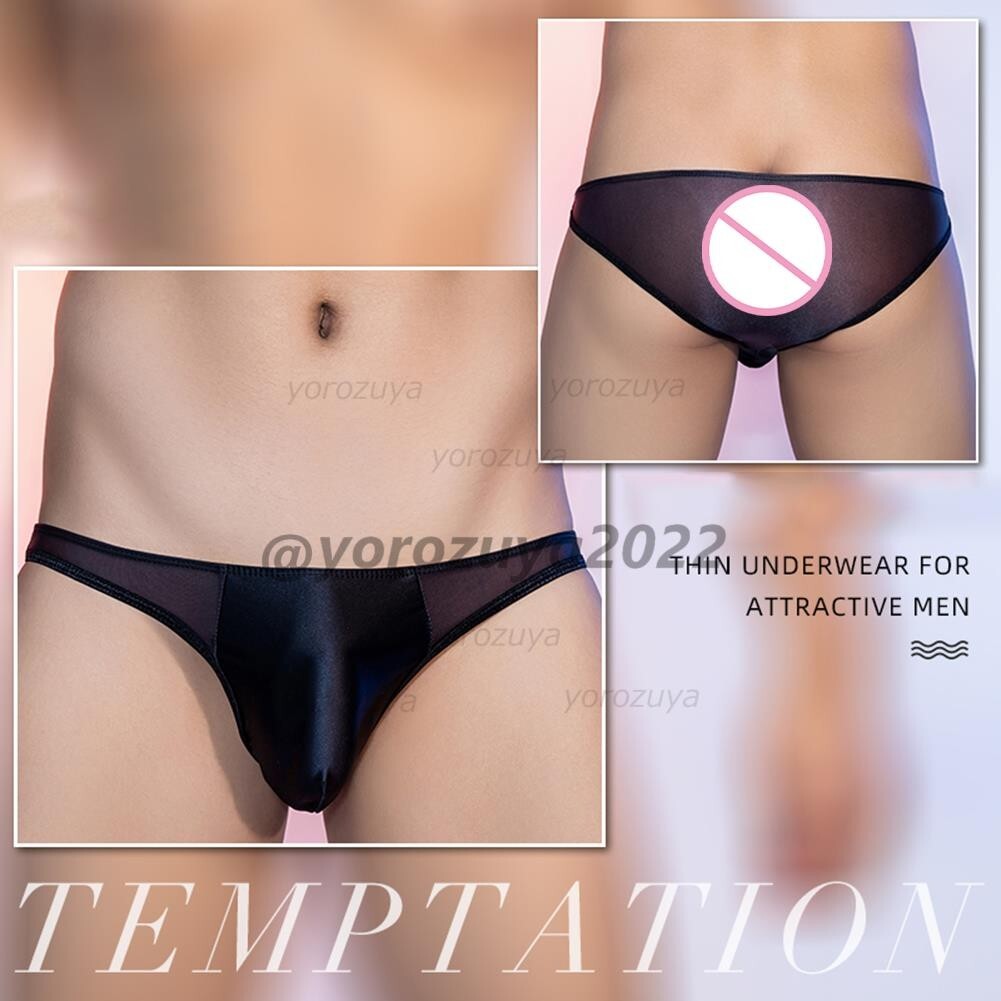> 158-196-7 メンズ ツヤ感 セクシー ペニスポーチ シースルー【ブラック,F】男性 下着 ランジェリー フルバック アンダーウェア ショーツ.1