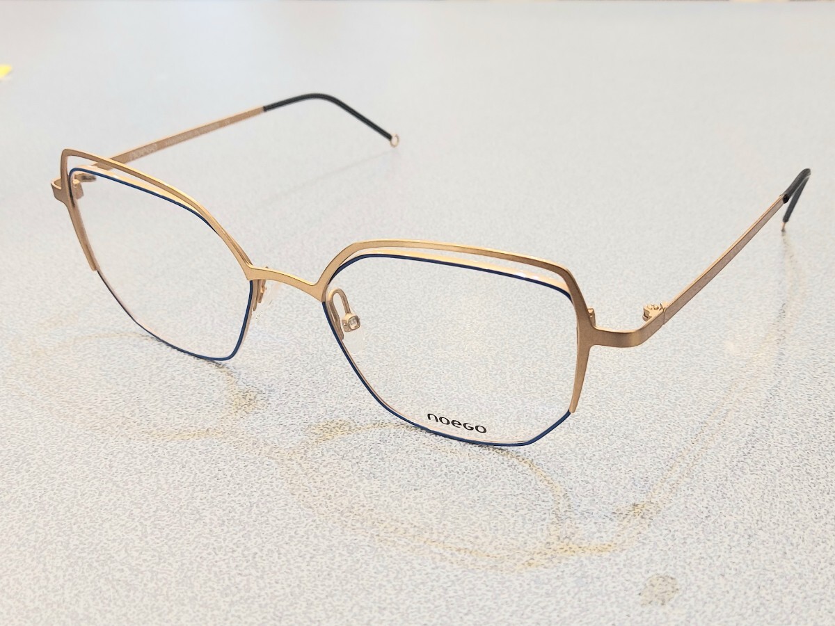 - 新品 noego ノエゴ フランス製 ブランド 眼鏡 メガネ フルリム 軽い 綺麗 オシャレ 高級感 青×ゴールド