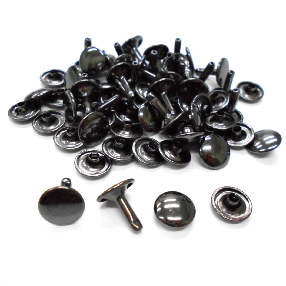 - レザークラフト カシメ 金具 両面 頭12mm 足12mm 30組 ブラックシルバー/手芸 キット パーツ 革 材料 かしめ