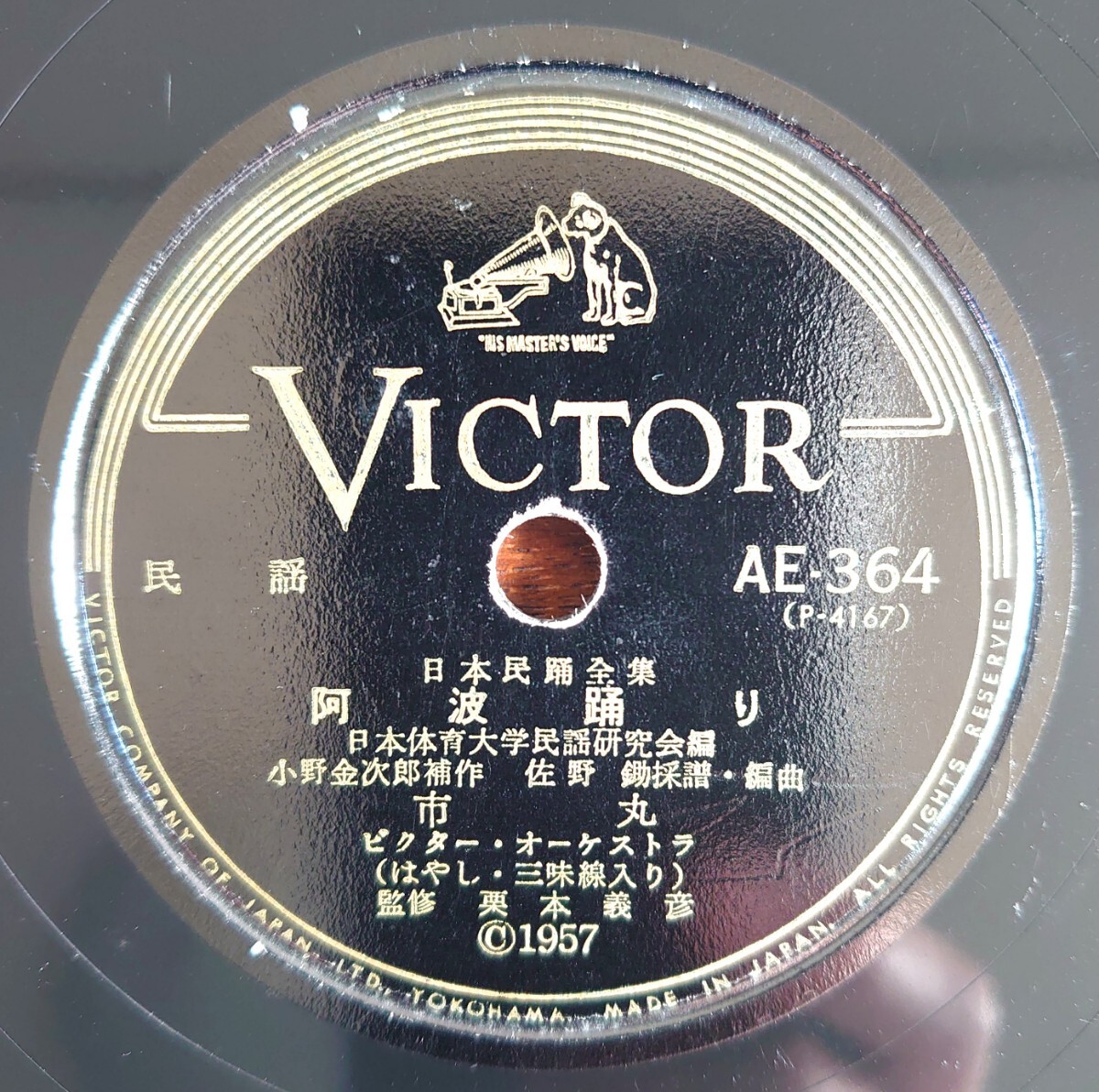 - 【SP盤レコード/ヒビ】VICTOR AE-364 日本民謡全集/阿波踊り 市丸/塩釜甚句(ハットセ節) 鈴木正夫