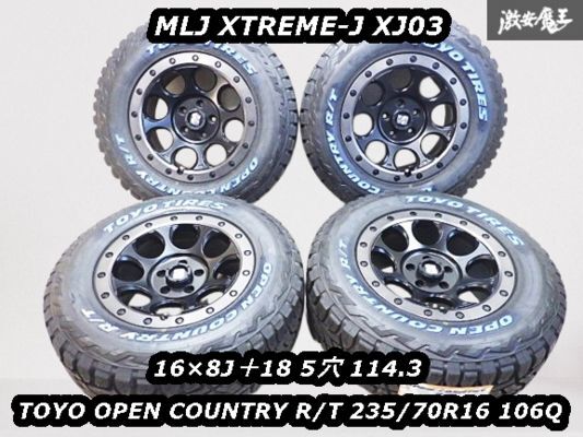 > ●MLJ XTREME-J XJ03 16×8J+18 5穴 114.3 TOYO オープンカントリー R/T 235/70R16 2021年 ゴツゴツ タイヤ 4本セット デリカD5 RAV4