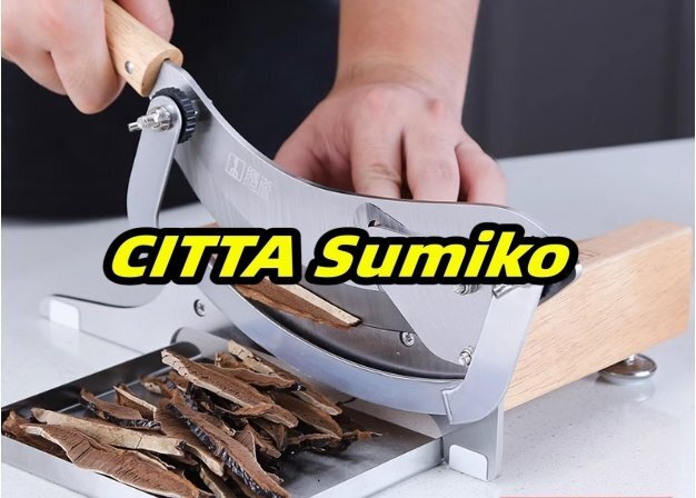 > 手動スライサー ジャーキーカッター ステンレス鋼 カーブ刃 木製スライス台 省力化 スライス厚さ0-12mm調整可能 調理器具