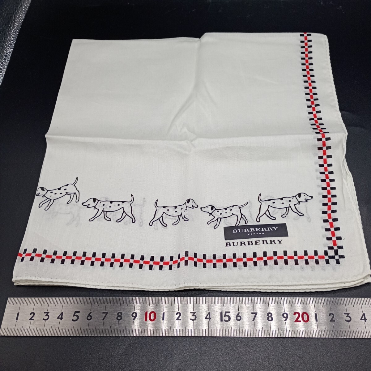 - BURBERRY バーバリー ハンカチ ホワイト 犬 いぬ dog no.3011
