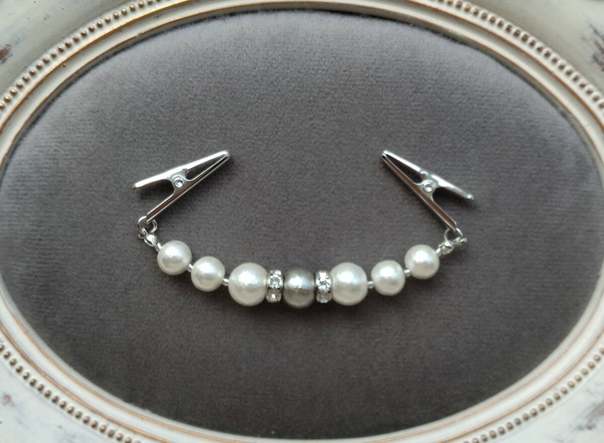 - コットンパールのストールクリップ シルバーグレーのショール留め