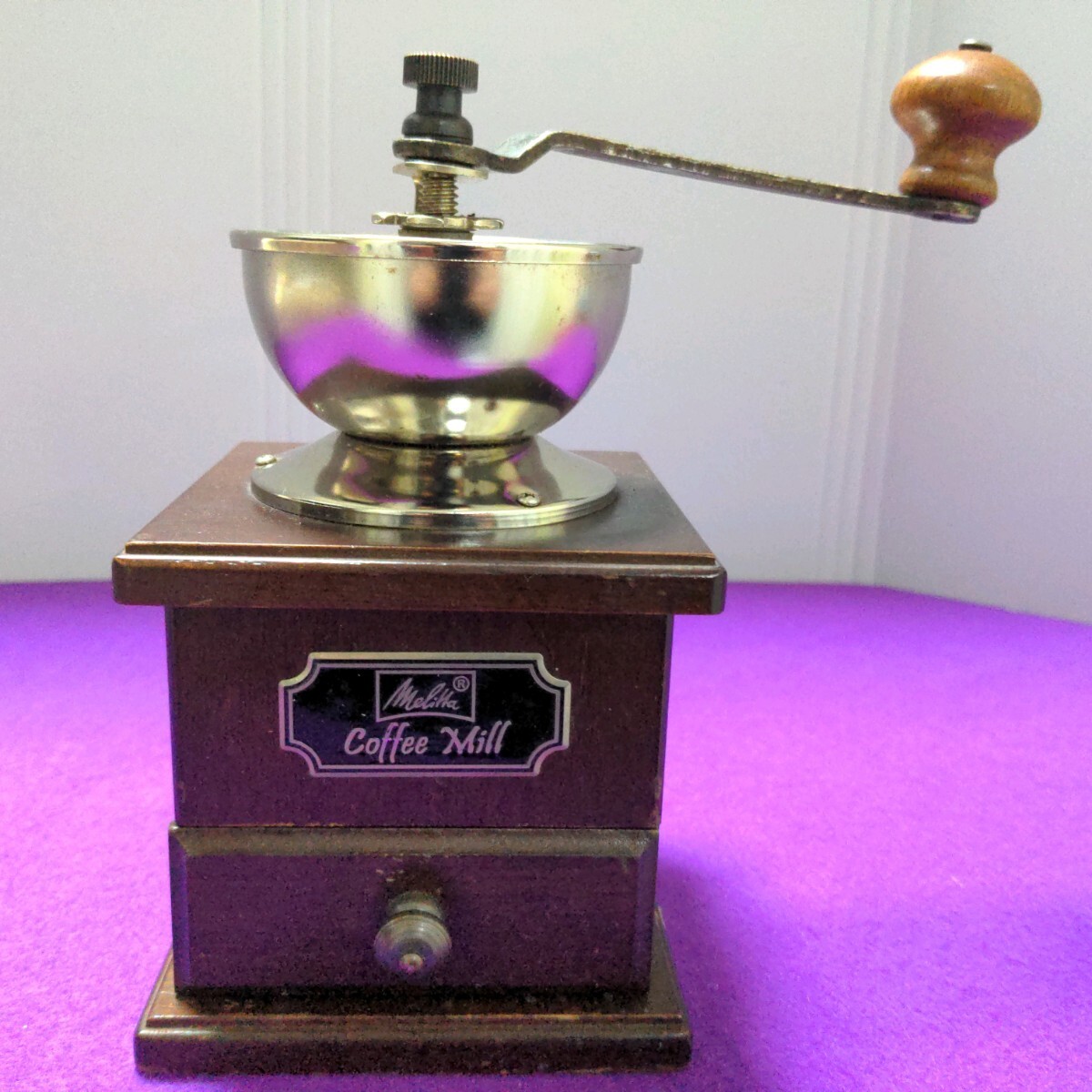 - 1-250109 Melitta メリタ コーヒーミル 手動 アンティーク 木製 幅約10cm×高さ20.5cm×奥行約10cm 手挽き 手動式 珈琲 レトロ