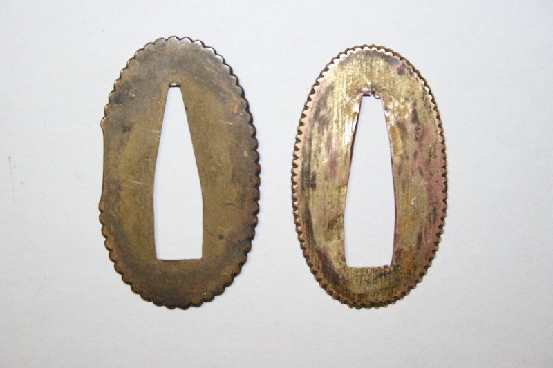 - 時代物本歌切羽 金鍍金銅地切羽1組 厚みあり !J