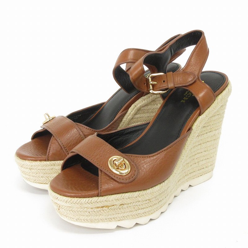 - コーチ COACH エスパドリーユ サンダル ストラップ ターンロック 茶 ブラウン 23 靴 ■GY19 レディース