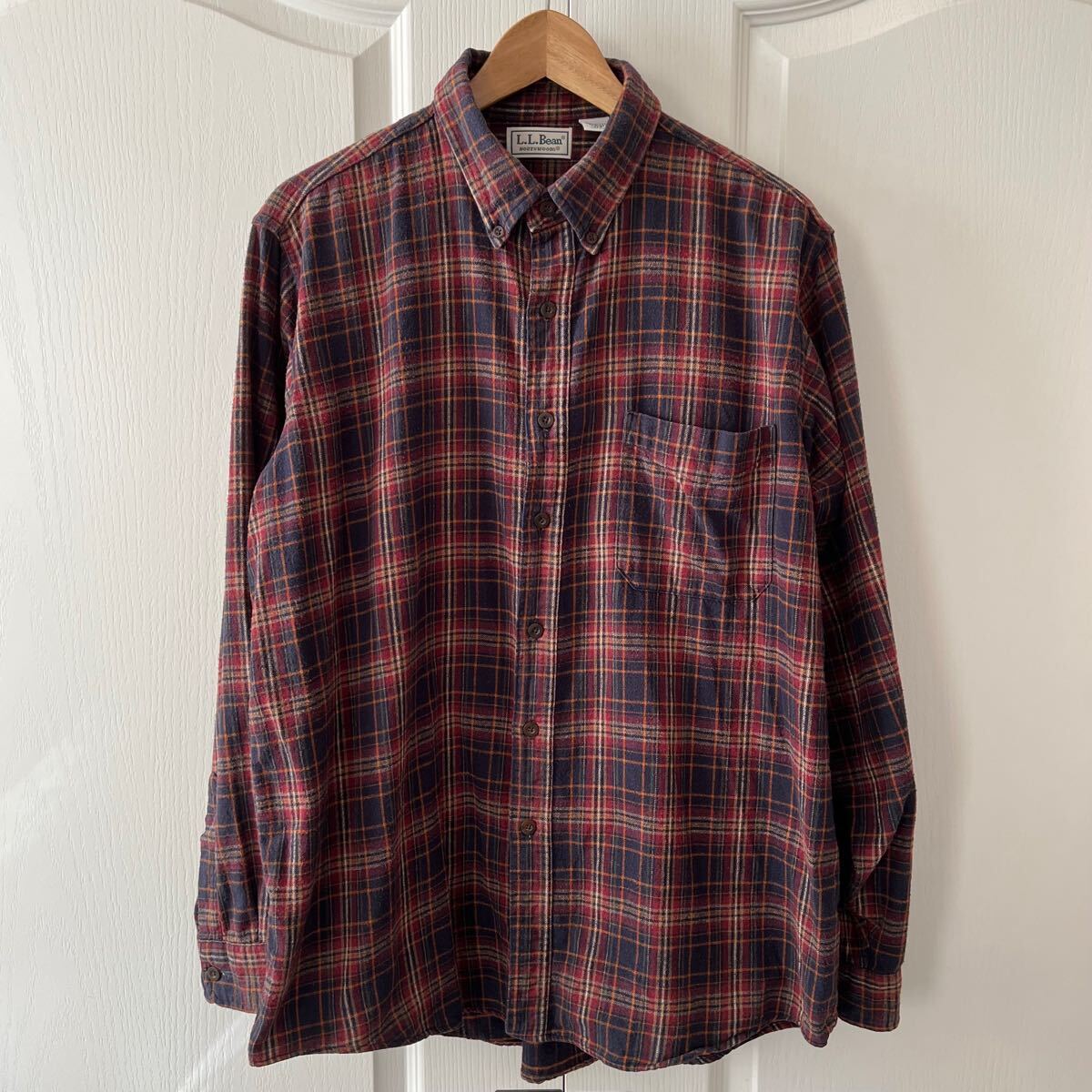 - L.L.Bean USA製 エルエルビーン チェック ネルシャツ L 長袖 シャツ アメリカ製 米国製 フランネル 90年代 llbean グレー レッド