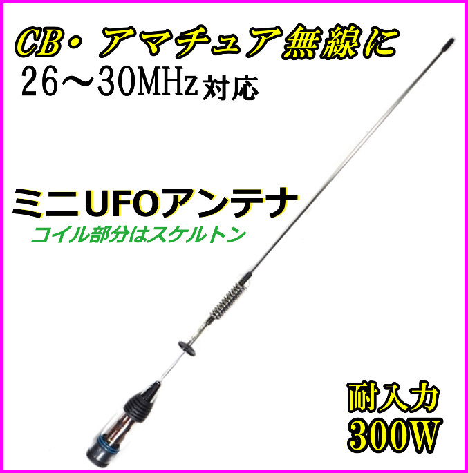 > コイル部分スケルトン♪26-30MHz 対応 CB アマチュア無線 耐入力300W UFOアンテナ M型 新品/無線機 モービル機 同軸ケーブルに 過激飛びMAX