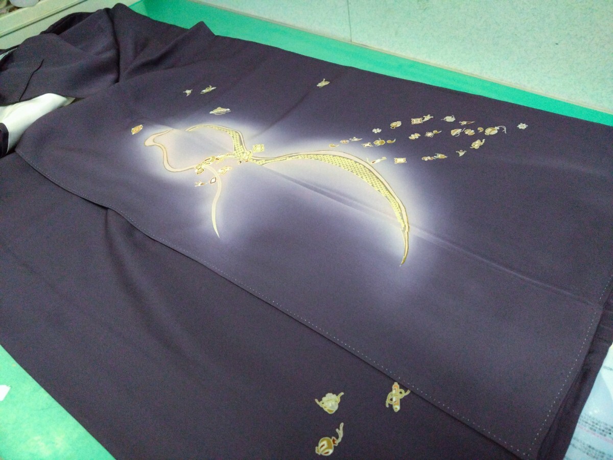 - ● 完全 未使用品 くすみカラー 紫系 正絹 着物 瓢箪 小槌 巻物 縁起物 付け下げ 卒業式 食事会 観劇 しつけ糸付き ③