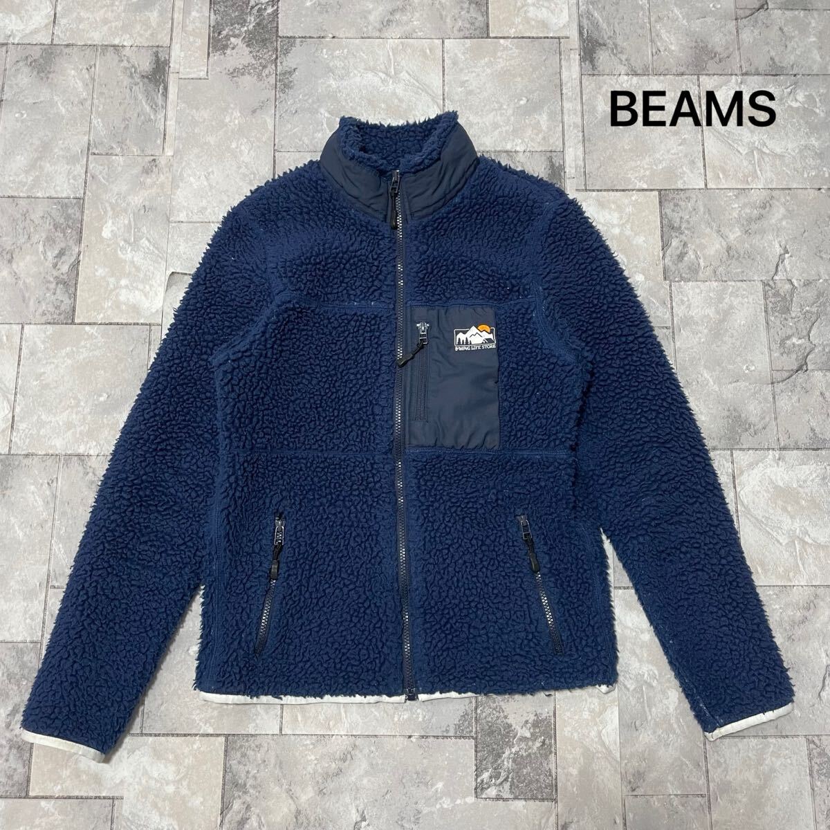 - BEAMS ビームス B'MING LIFE STORE フリースジャケット ボア アウトドア 刺繍ロゴ ネイビー レディース サイズM 玉SS2921