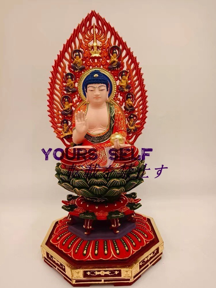 - 即决 縁起物 彩繪 薬師瑠璃光如来 薬師如来 極彩色 座像 仏像 木彫り 木製 仏具仏壇 仏教美術