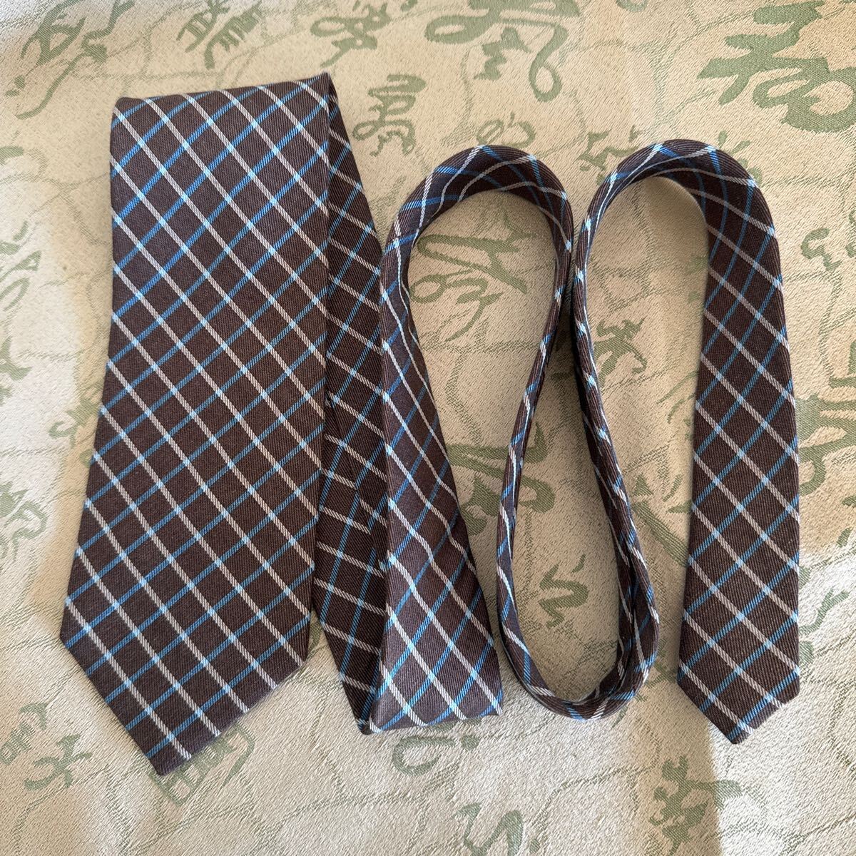 - Yves Saint Laurentネクタイ ブランドネクタイ シルク30% 麻70% ブラウン、ブルー チェック柄ネクタイ