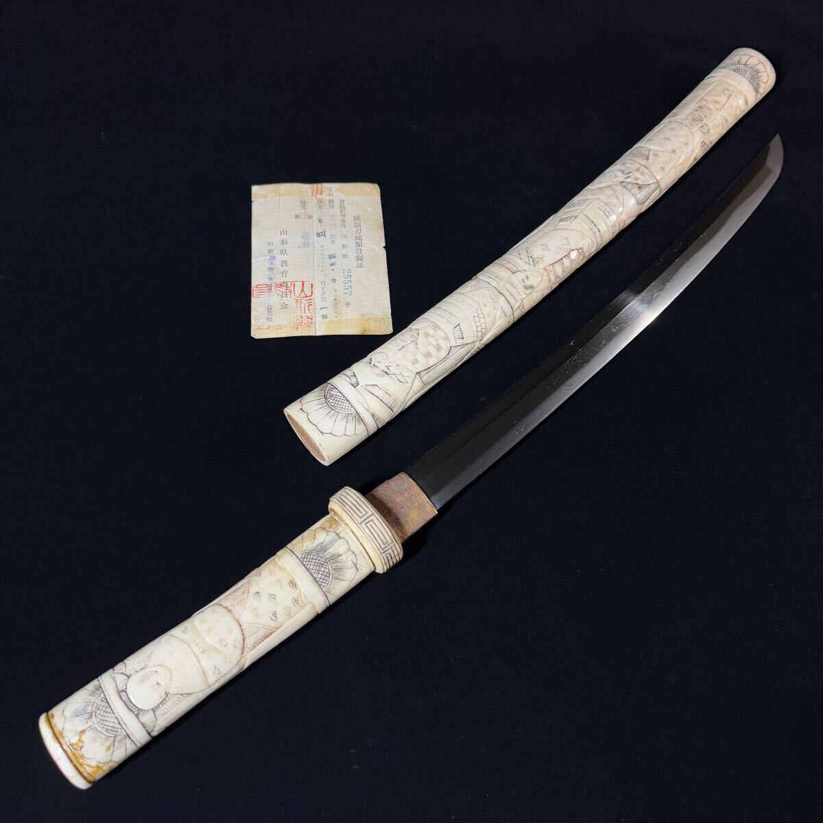 - 脇差 小沸よくつき美しい相州 骨彫町人図脇差拵 細密彫刻 (検) 日本刀 脇差 相州 拵え 拵