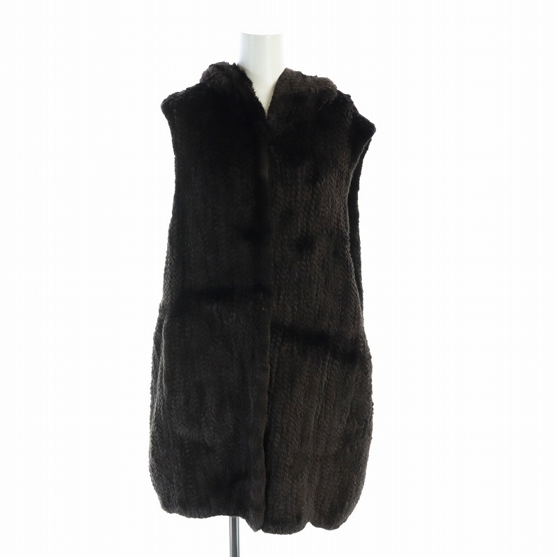 - CBF FOURREUR 毛皮ベスト ダークミンクファー ミドル フード 茶 ブラウン ■GY18 /MQ レディース