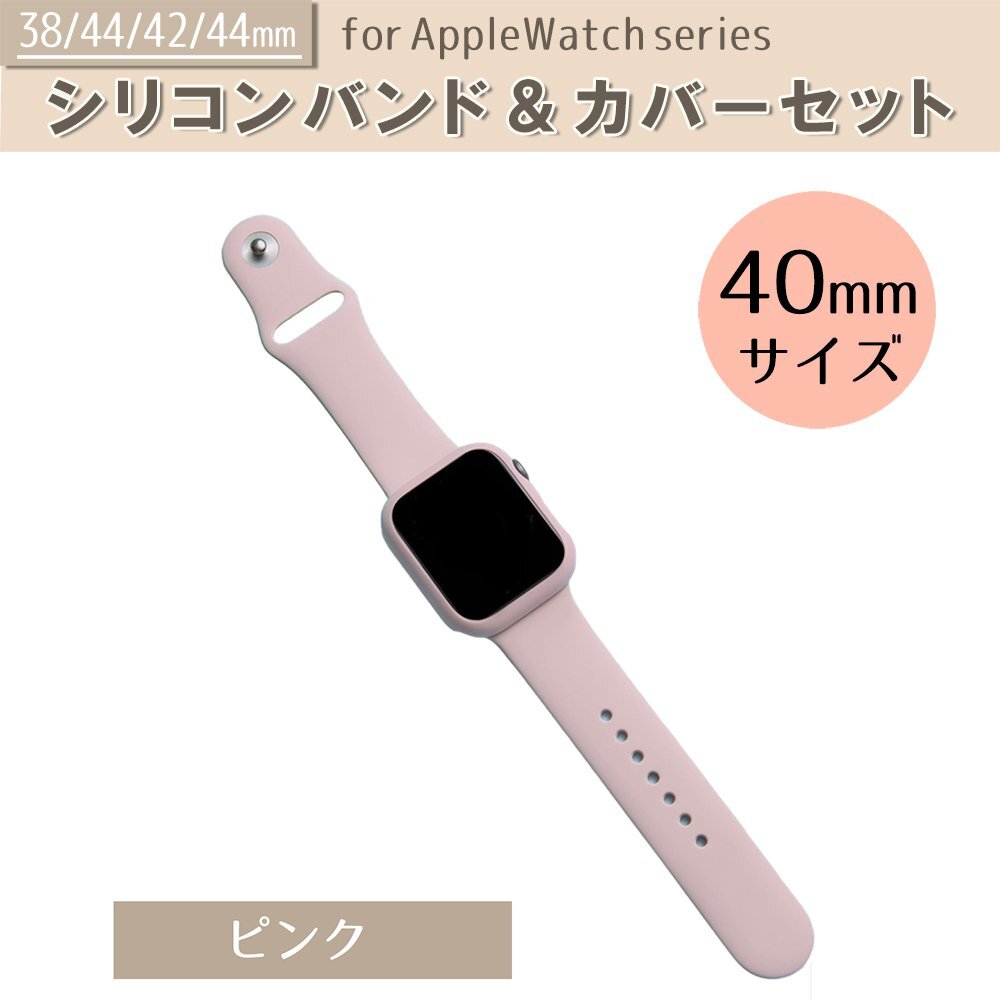 - AppleWatch アップルウォッチ バンド ベルト シリコン カバーセット 交換ベルト 40mm ピンク watchband13-40pi
