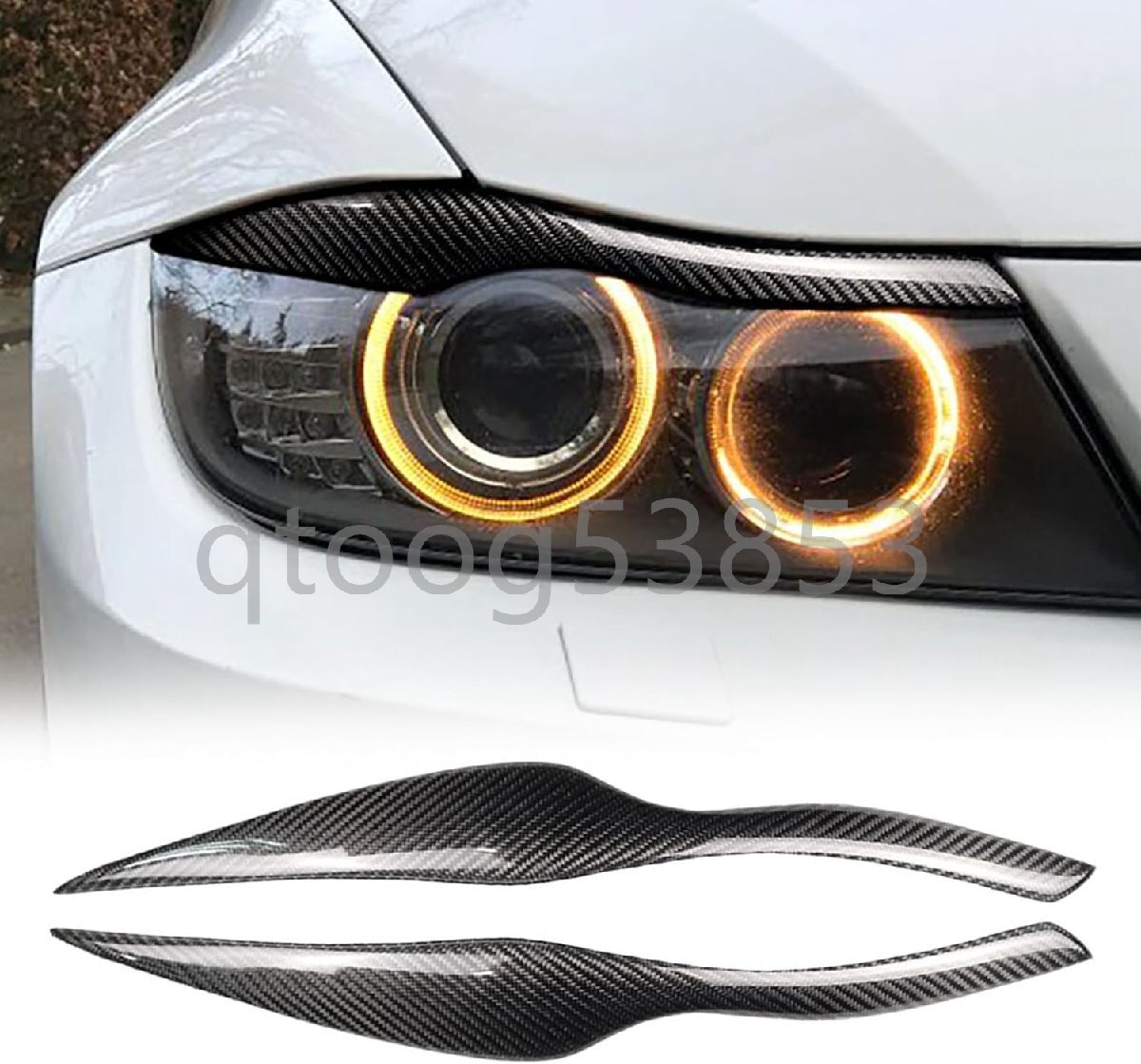 > カーボンファイバー ヘッドライト 眉毛 まぶたトリムカバー ステッカー ヘッドランプ 眉カバー BMW E90 E91 2005-2012 セダンとワゴンモデ
