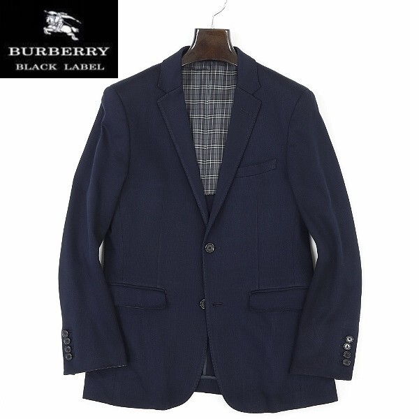- ◆BURBERRY BLACK LABEL バーバリー ブラックレーベル 裏地チェック柄 コットン 2釦 紺ブレザー ジャケット ネイビー S