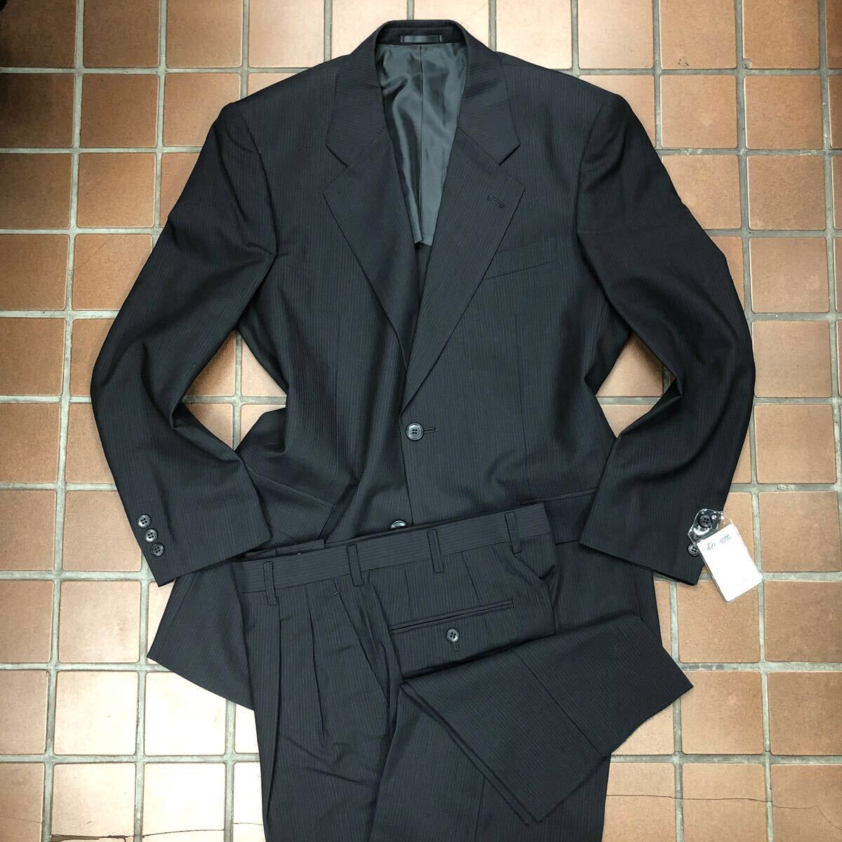 - 【新品★激安スーツ未使用品】紳士服 背広 メンズストライプスーツ/A6 サイズL/黒 ブラック系 センターベンツ 2タック