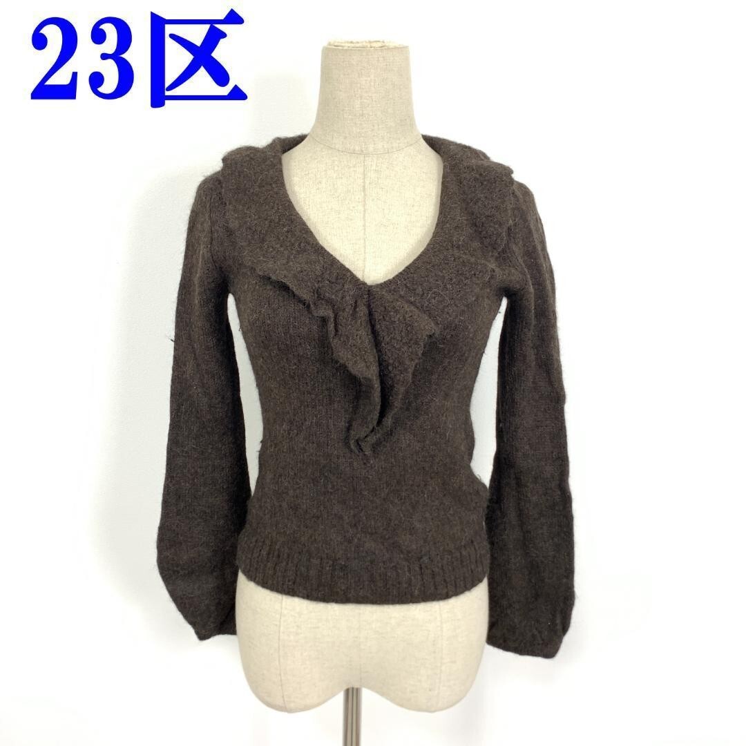 - 23区 長袖ニット アルパカ100% フリル 茶色 ブラウン 38 C1873