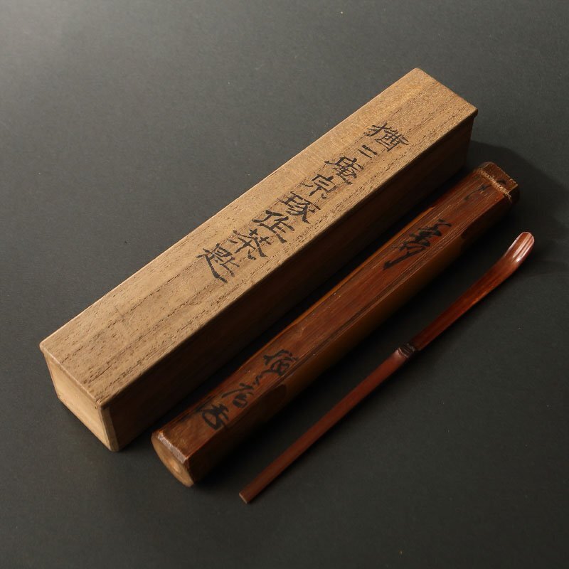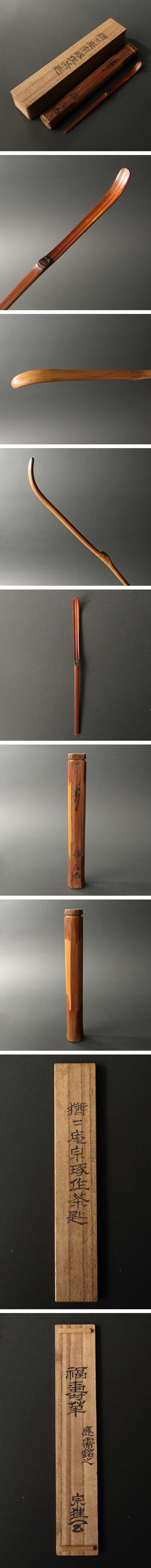 大地宗琢 竹茶杓 宗桂箱書 共筒 銘「福寿草」(茶道具 竹工芸 竹細工 抹茶 さじ 点前 茶人 茶の湯 )