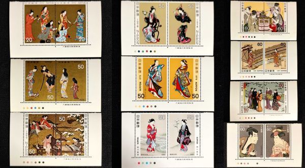 - [25011905]【切手趣味週間・1975年~1984年】2種連刷 銘版・CM付 20種「鳥居清長 喜多川歌麿 東洲斎写楽…」20円×2 50円×10 60円×8 美品