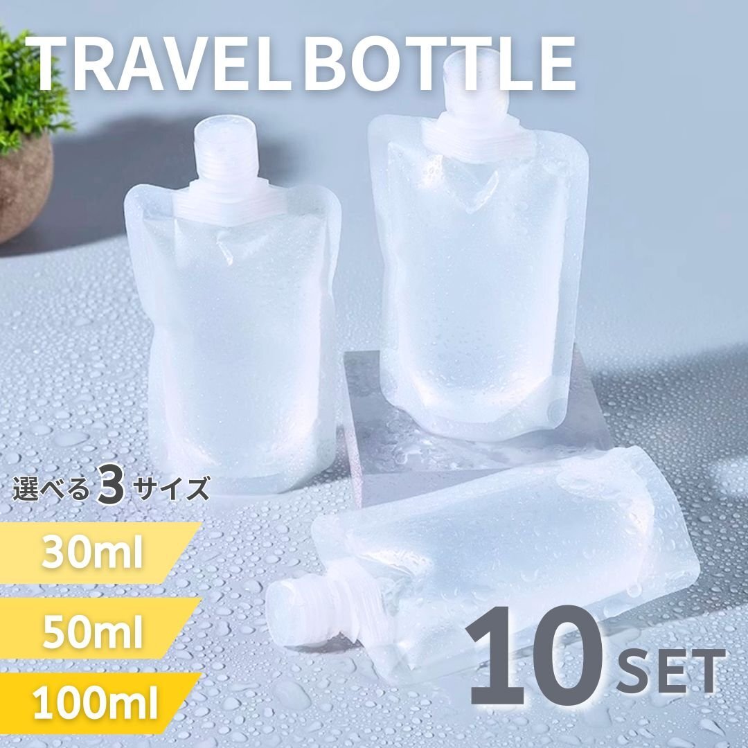 - 【10個】トラベルボトル 液体個包装 容器 30ml 50ml 100ml 選べる3サイズ ボトル 10個セット 旅行 小分け パウチ 便利グッズ 便利