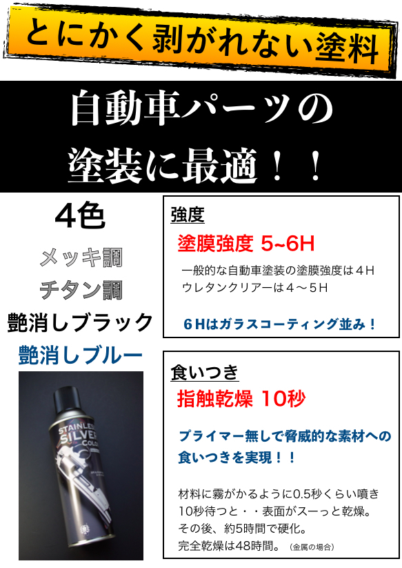 > トラックパーツ塗装に最適!とにかく剥がれない スプレー 塗料4色(メッキ調/チタン調/艶消ブラック/艶消ブルー)徳用4本セット(送料1本分)