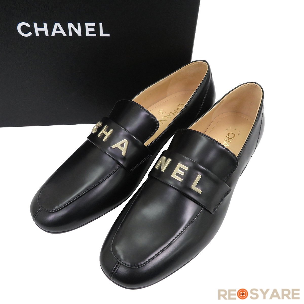 - 新古品 CHANEL シャネル 2023 23B G45123 CC ココマーク レタリングロゴ レザー ローファー モカシン シューズ 箱付き 47139