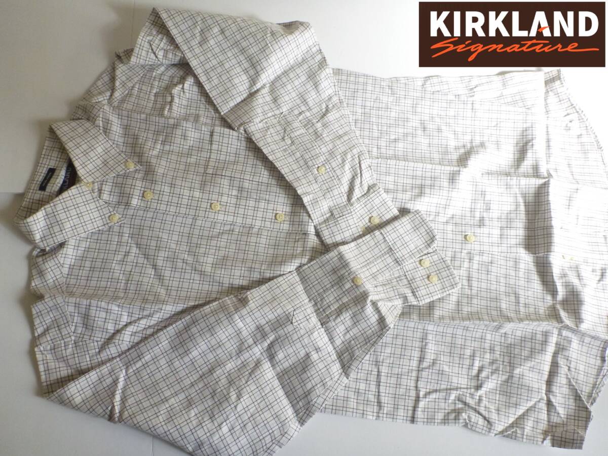 - 新品 KIRKLAND カークランド★上質コットン100 チェック柄 メンズ長袖シャツ ノンアイロン S